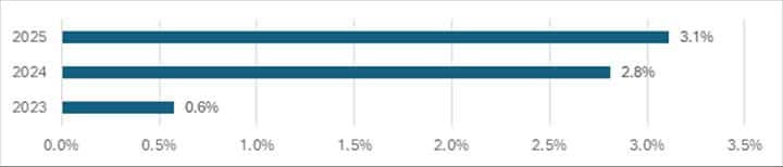- There has been a notable rise in candidates who reported being dismissed from a law enforcement agency, increasing from 0.6% in 2023 to 3.1% in 2025. This upward trend highlights potential challenges in recruitment screening and maintaining ethical standards.